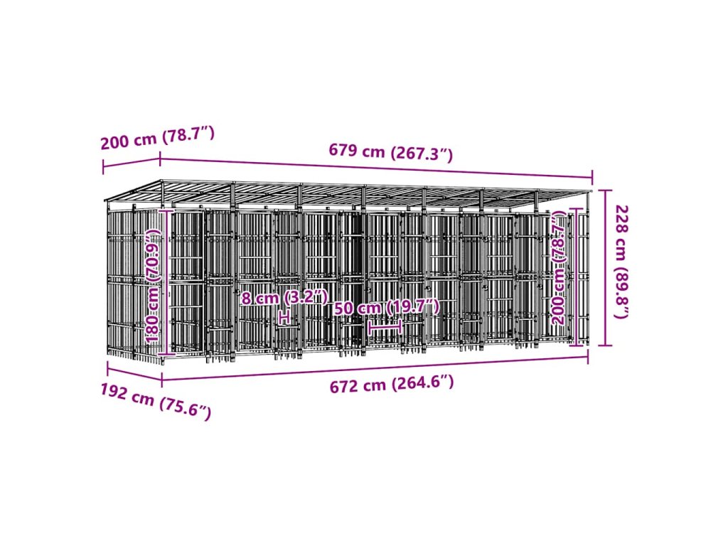 vidaXL Venkovní psí kotec se střechou ocel 12,9 m2