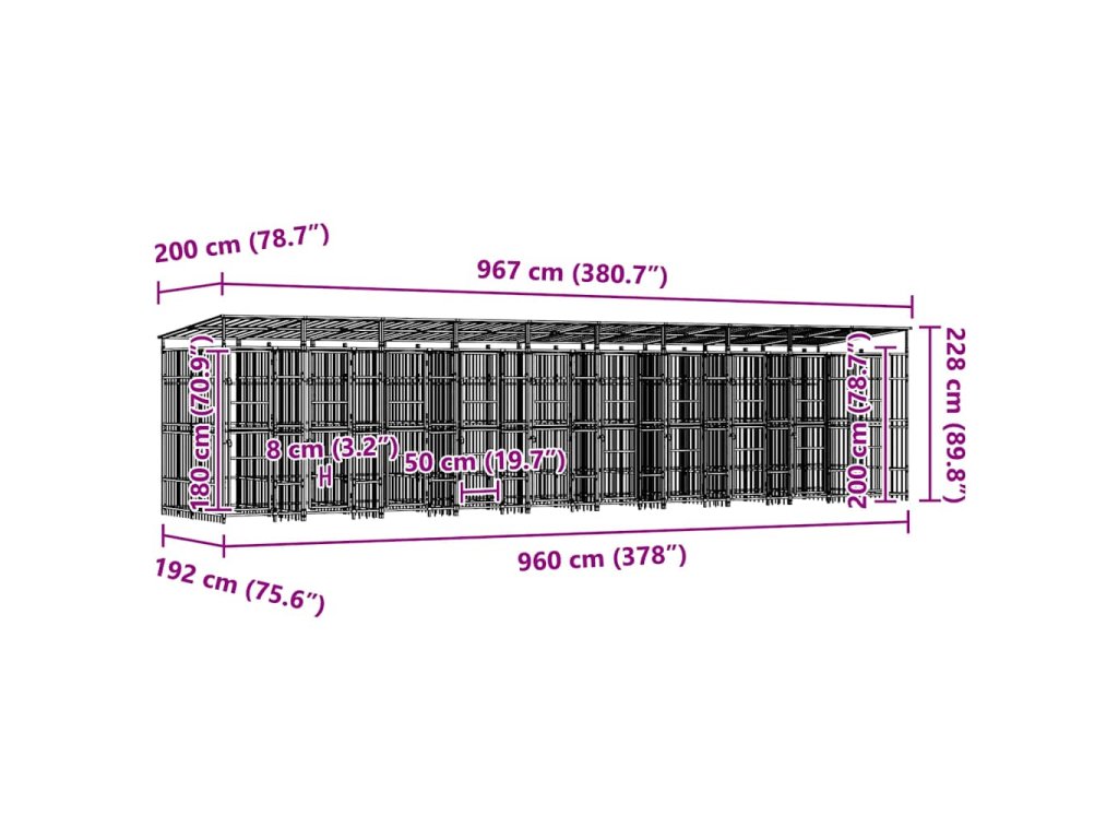 vidaXL Venkovní psí kotec se střechou ocel 18,43 m2