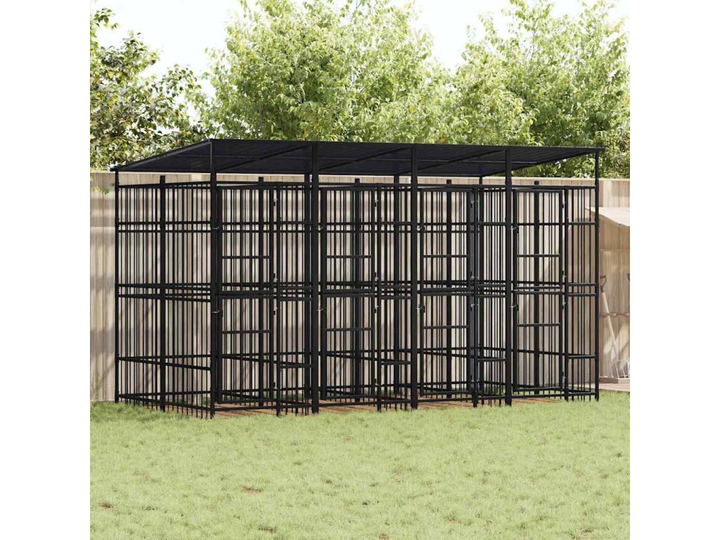 vidaXL Venkovní psí kotec se střechou ocel 7,37 m2