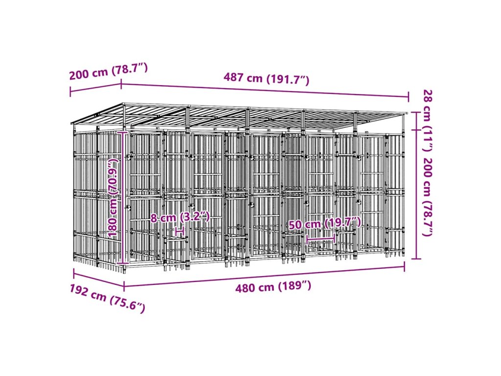 Tento psí kotec poskytuje dostatek prostoru pro cvičení. Stěny z ocelových tyčí pomáhají předcházet neplechám a neočekávaným nehodám a zároveň umožňují větrání. Díky robustní ocelové konstrukci s práškovým nástřikem je tento psí kotec odolný a vyrobený pro dlouhou životnost. Střecha chrání před sluncem, deštěm, sněhem a dalšími povětrnostními vlivy. Dveře s výklopnými dveřmi a uzamykatelným západkovým systémem zajišťují vašim psům větší bezpečnost a ochranu.