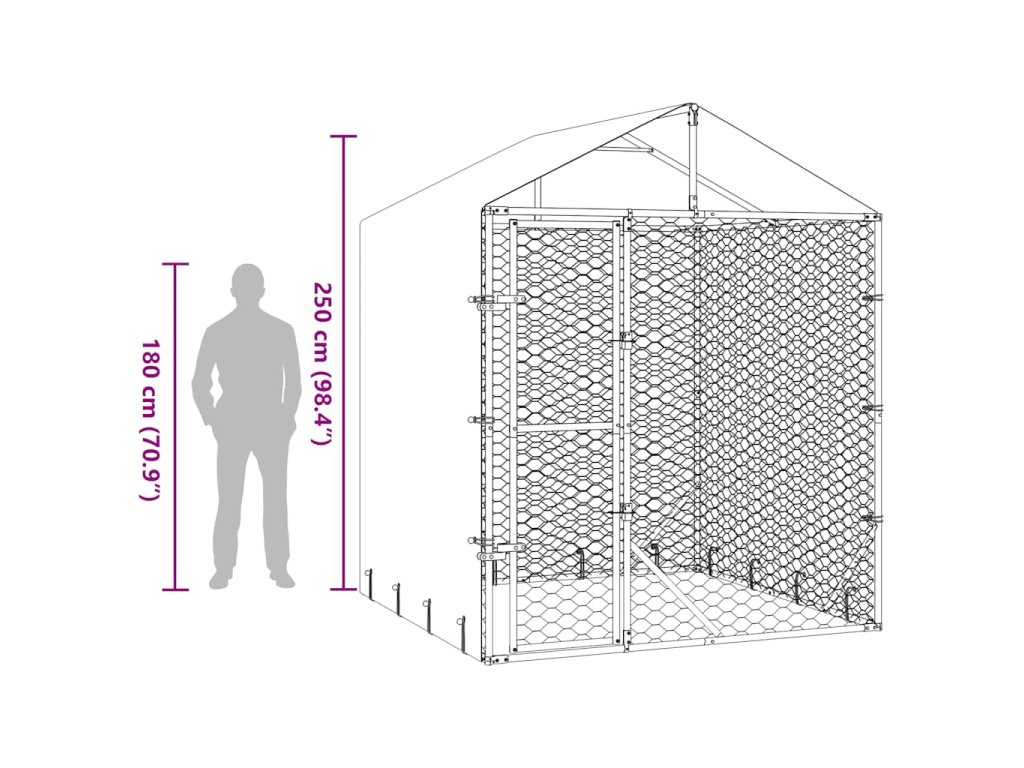 vidaXL Venkovní psí kotec se střechou stříbrný 2 x 2 x 2,5 m ocel