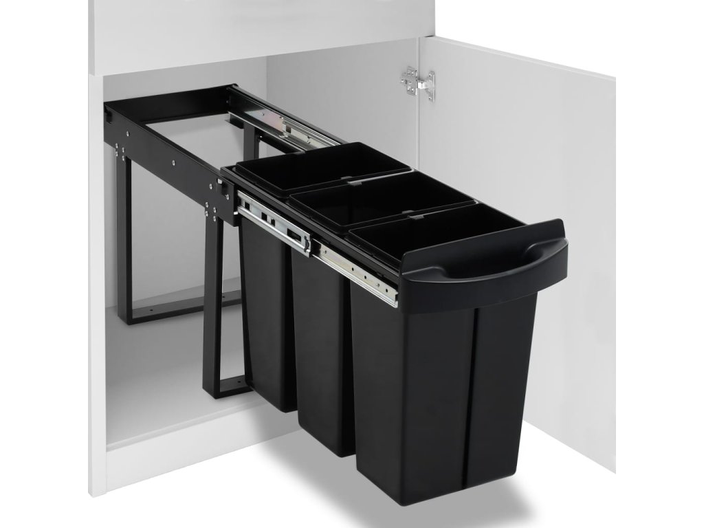 Tento odpadkový koš je ideálním řešením do každé moderní kuchyně. Snadno se vejde do kuchyňské skříňky, aby odpadky zbytečně nehyzdily váš prostor. Obsahuje tři oddělené přihrádky, které vám usnadní třídění. Jednotlivé nádoby lze zcela vyjmout pro důkladné čištění. Mechanismus pomalého zavírání chrání váš nábytek a je bezpečnější pro děti. Víko a plášť jsou vyrobené z kvalitního ABS a pastu, který nepodléhá korozi a má dlouhou životnost.