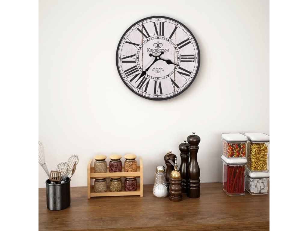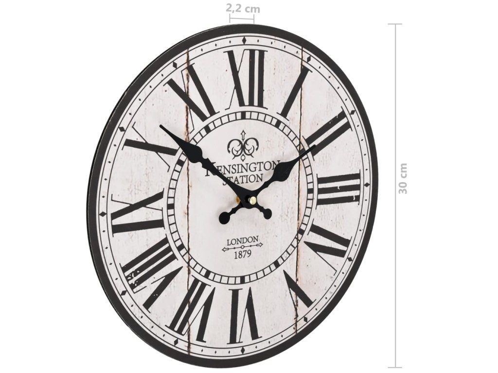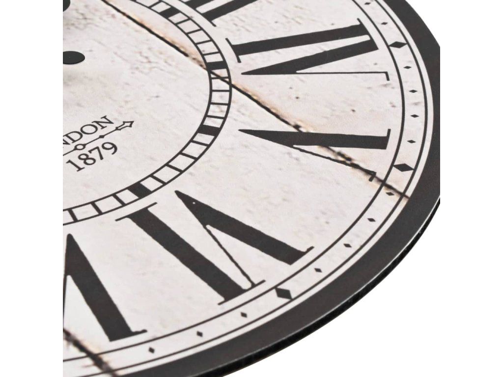 Hodiny mají pevný rám z MDF a jsou vysoce odolné. Díky velkým rozměrům ciferníku a dobře čitelným číslicím je bez obtíží přečtete i z větší dálky. Lze je snadno zavěsit na stěnu. Hodiny dodají vašemu interiéru nostalgický vzhled.