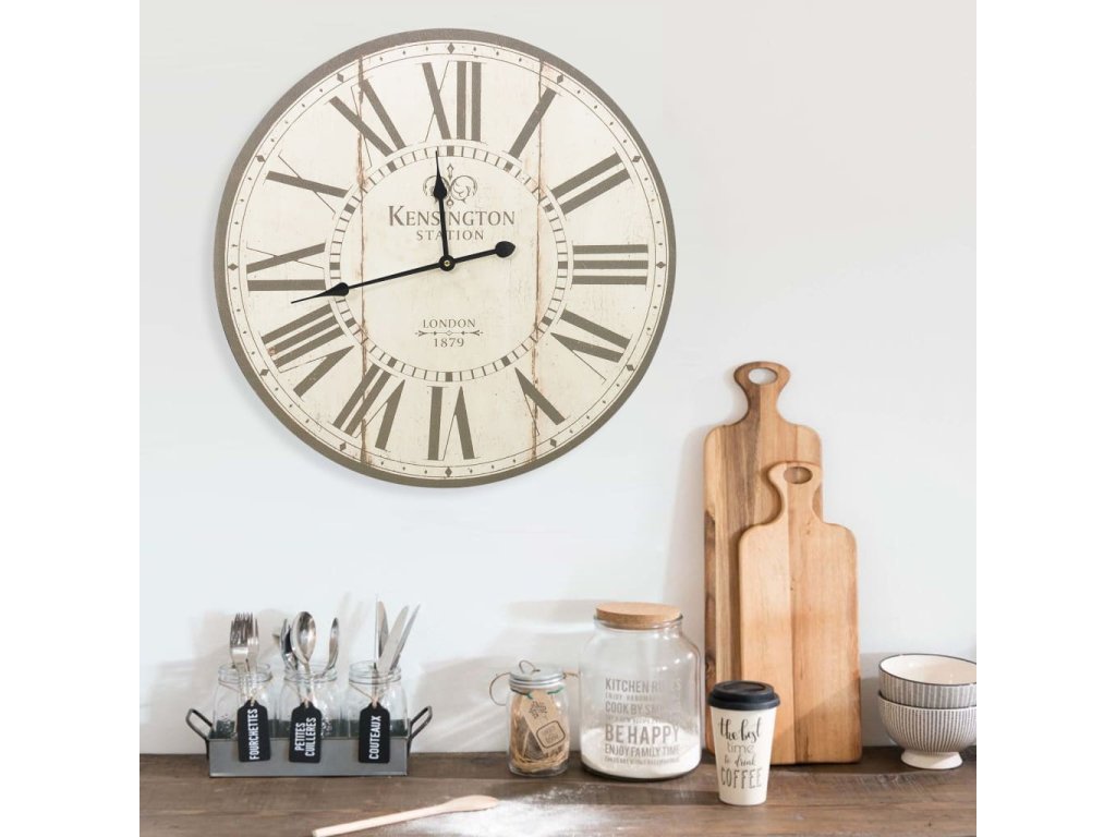 Hodiny mají pevný rám z MDF a jsou vysoce odolné. Díky velkým rozměrům ciferníku a dobře čitelným číslicím je bez obtíží přečtete i z větší dálky. Lze je snadno zavěsit na stěnu. Hodiny dodají vašemu interiéru nostalgický vzhled.