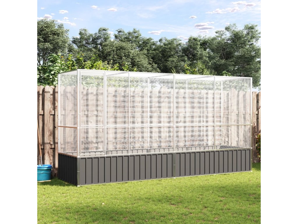 vidaXL Voliéra s nástavbou stříbrná 418,5 x 107 x 212 cm ocel