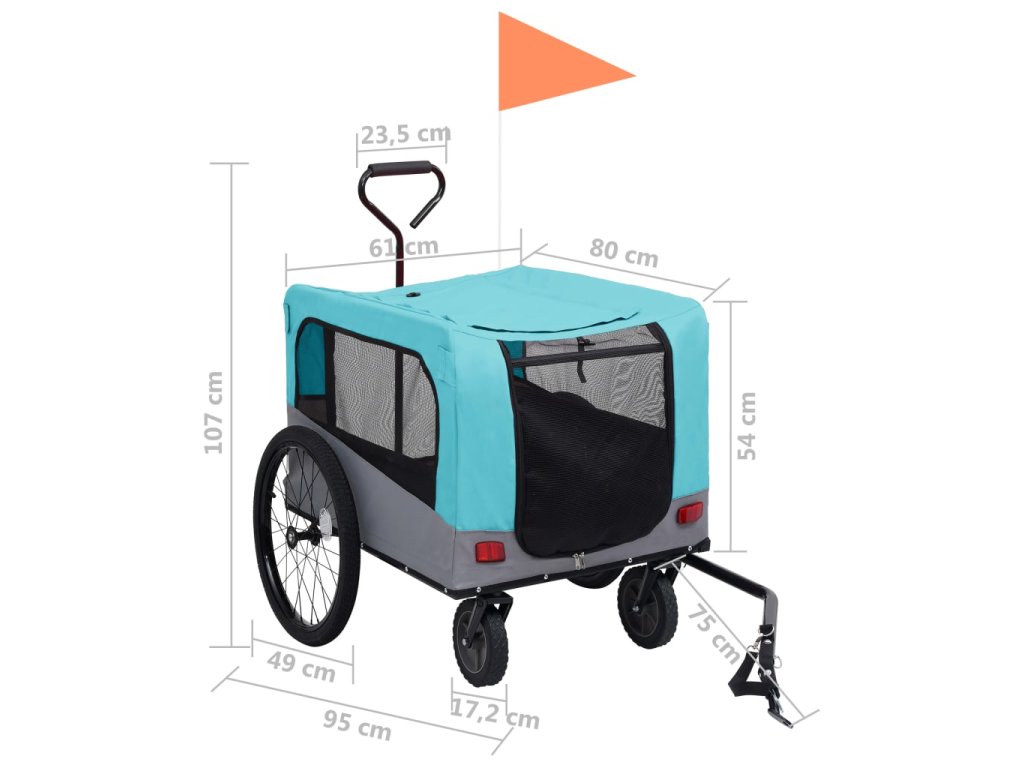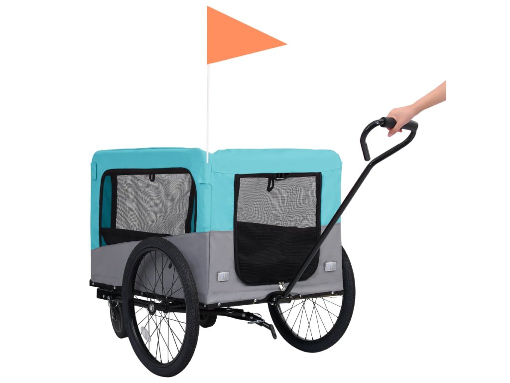 vidaXL Vozík pro psa za kolo a na běhání 2 v 1 modro-šedý