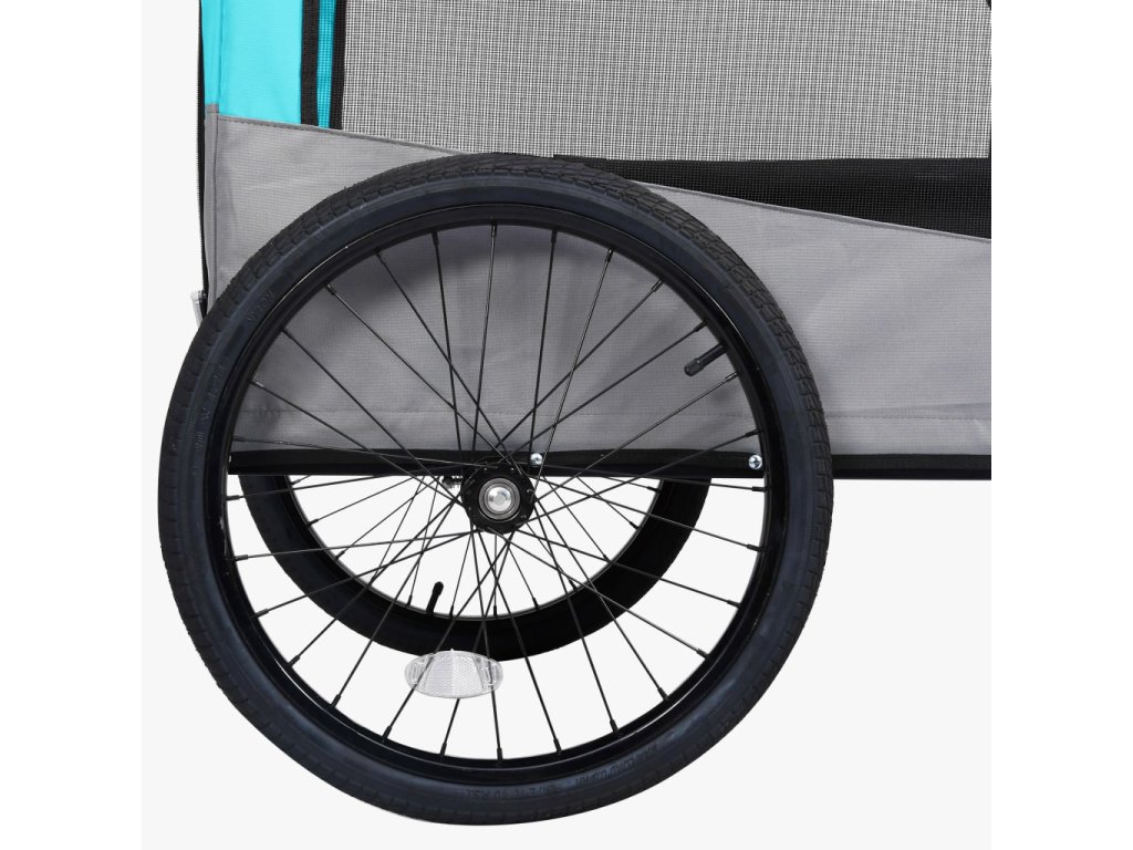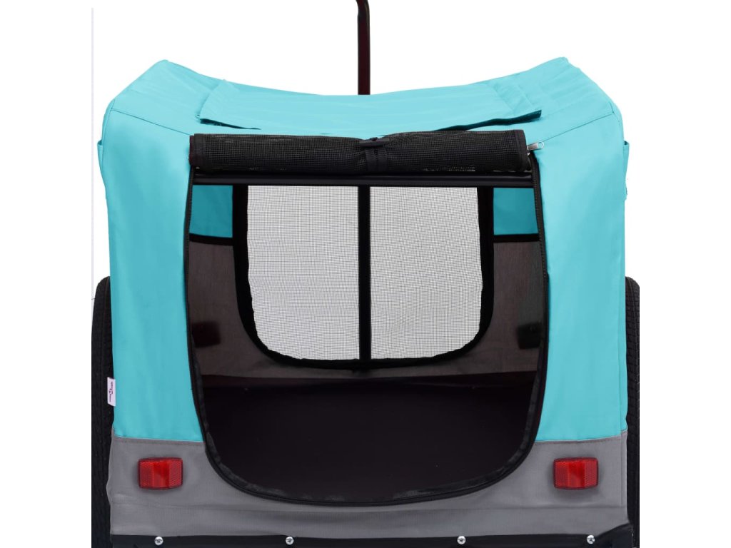 Vozík má pevnou konstrukci z oceli a je zhotoven z oxfordské tkaniny, takže je odolný a snadno se udržuje. Po obou stranách má okénka ze síťoviny, která zajišťují maximální cirkulaci vzduchu, zatímco přední a zadní otvory zajišťují snadný vstup do vozíku. Vozík je vybavený tlumiči pro plynulou jízdu a jeho přední kolo je navíc otočné o 360 stupňů. Rotující bezpečnostní kloub zaručuje, že se vozík nepřevrátí, i kdybyste spadli z kola. Vozík je také vybavený rychlospojkou pro snadné připojení za kolo. Pokud ho právě nepotřebujete, můžete ho složit, aby zbytečně nepřekážel.