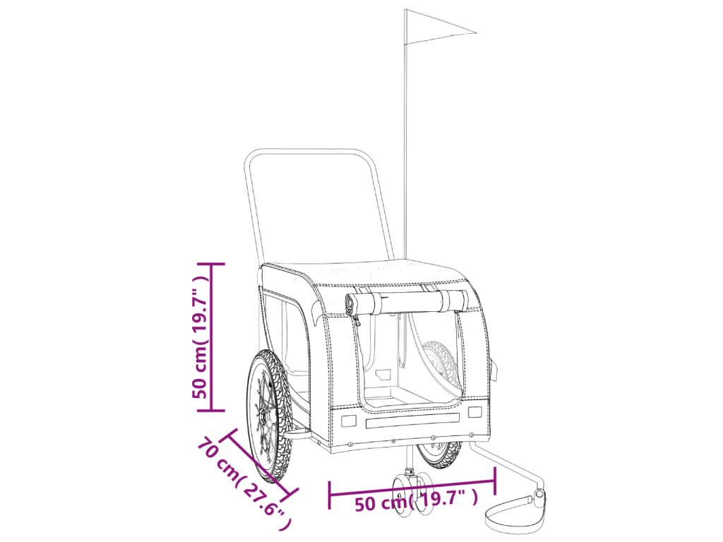 - Praktický přívěs za kolo: Tento vozík za kolo je vyroben z oxfordské tkaniny a je vybaven PVC krytem, který chrání vašeho domácího mazlíčka před mrholením. Dno vozíku tvoří černá nosná deska, vytvářející pohodlný prostor.