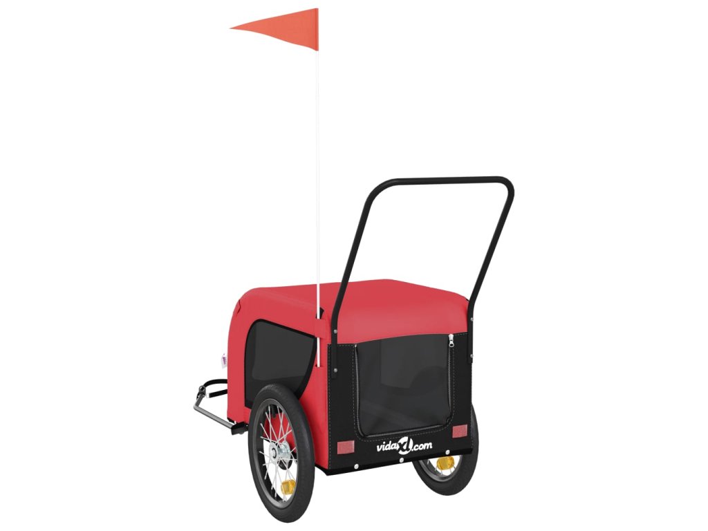 vidaXL Vozík za kolo pro psa červený a černý oxfordská tkanina/železo