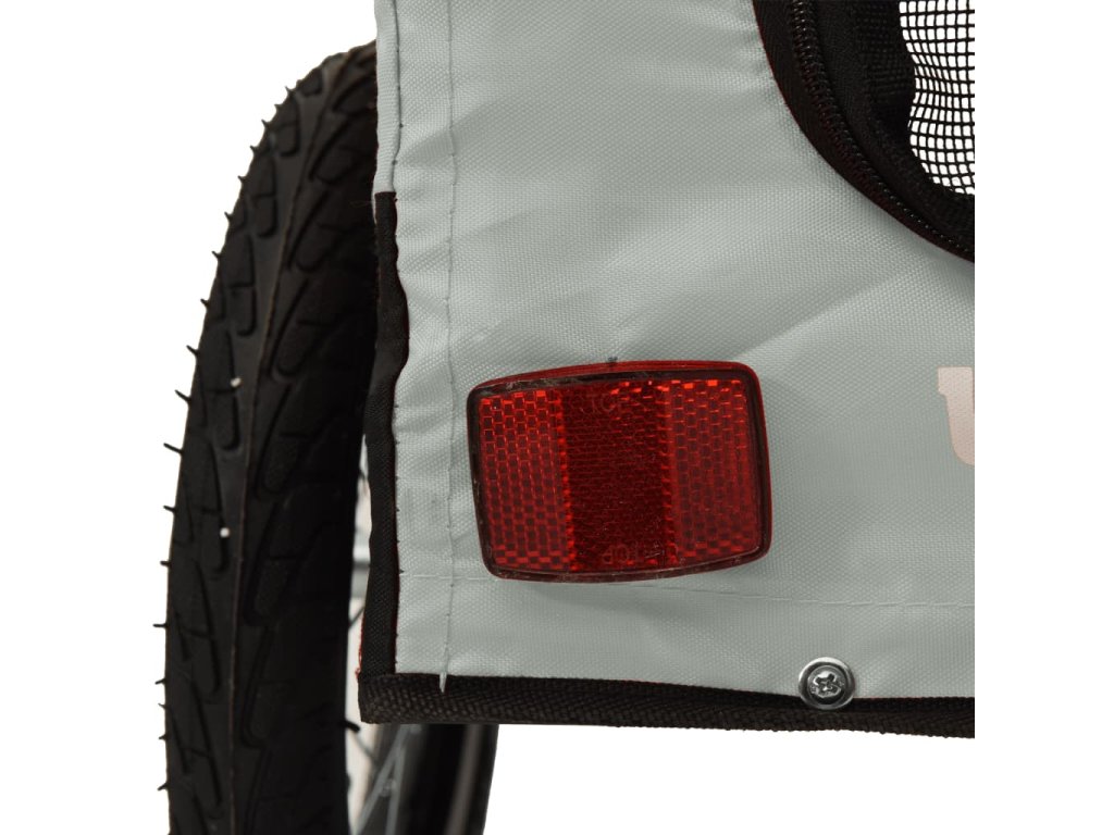 - Praktický přívěs za kolo: Tento vozík za kolo je vyroben z oxfordské tkaniny a je vybaven PVC krytem, který chrání vašeho domácího mazlíčka před mrholením. Dno vozíku tvoří černá nosná deska, vytvářející pohodlný prostor.
