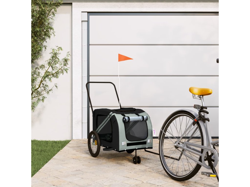 vidaXL Vozík za kolo pro psa šedý a černý oxfordská tkanina a železo