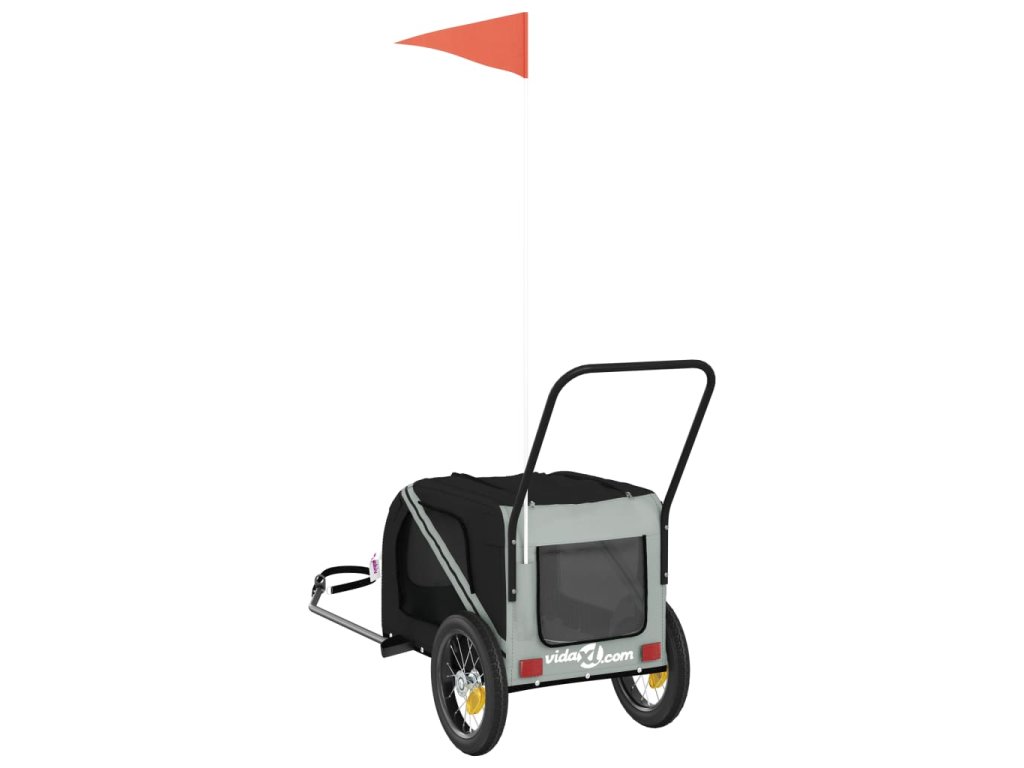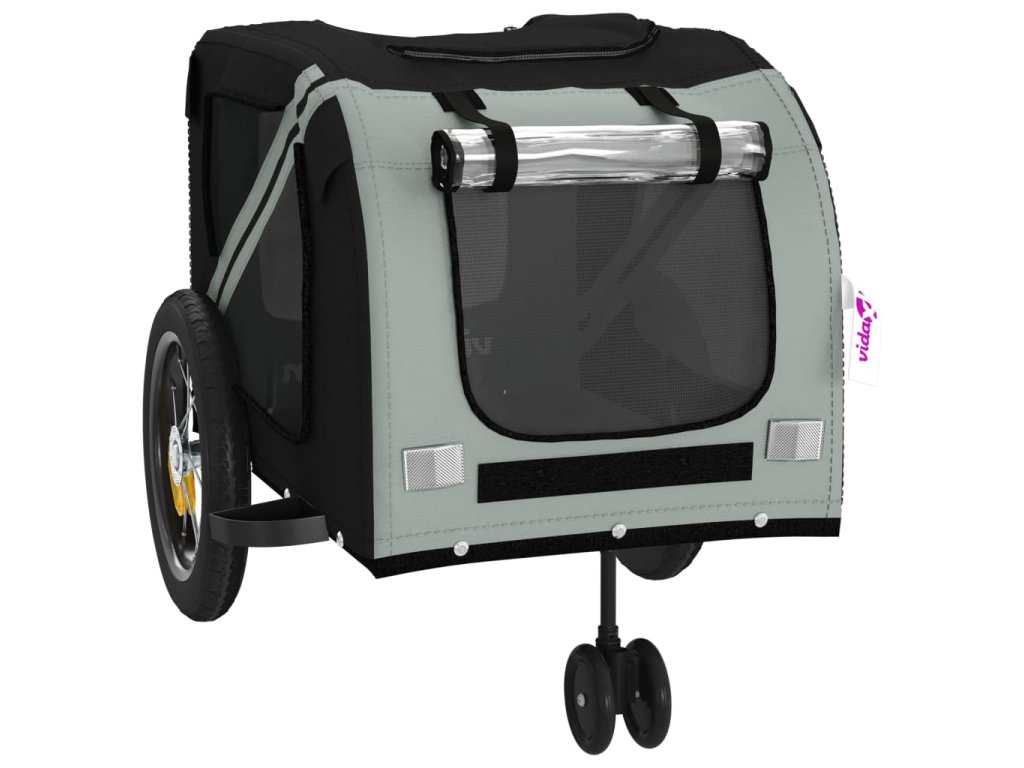 vidaXL Vozík za kolo pro psa šedý a černý oxfordská tkanina a železo