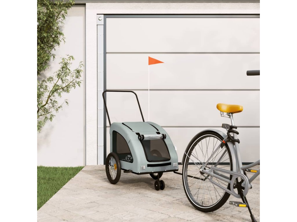 vidaXL Vozík za kolo pro psa šedý oxfordská tkanina a železo