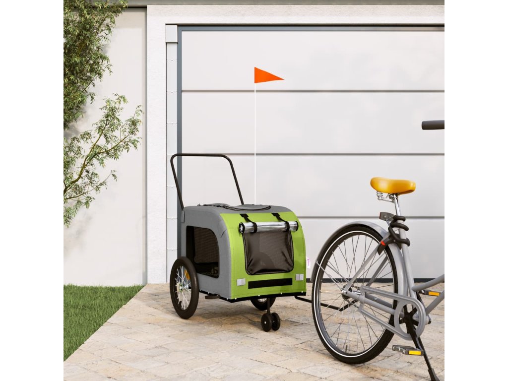 vidaXL Vozík za kolo pro psa zelený a šedý oxfordská tkanina a železo