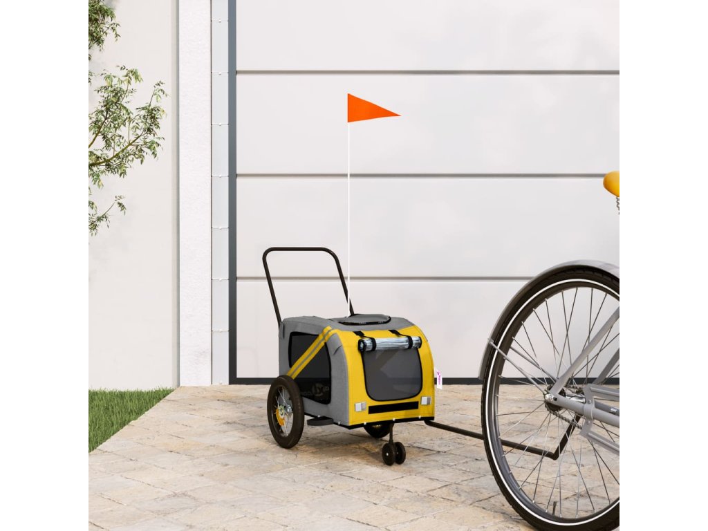 vidaXL Vozík za kolo pro psa žlutý a černý oxfordská tkanina a železo