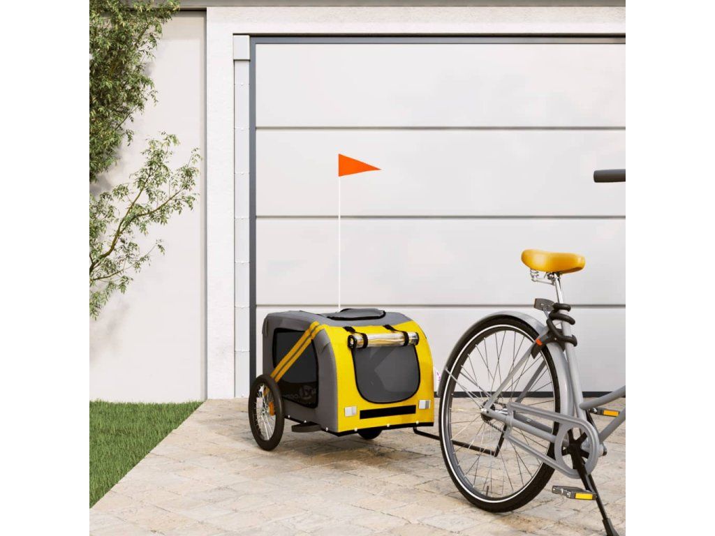 vidaXL Vozík za kolo pro psa žlutý a šedý oxfordská tkanina a železo