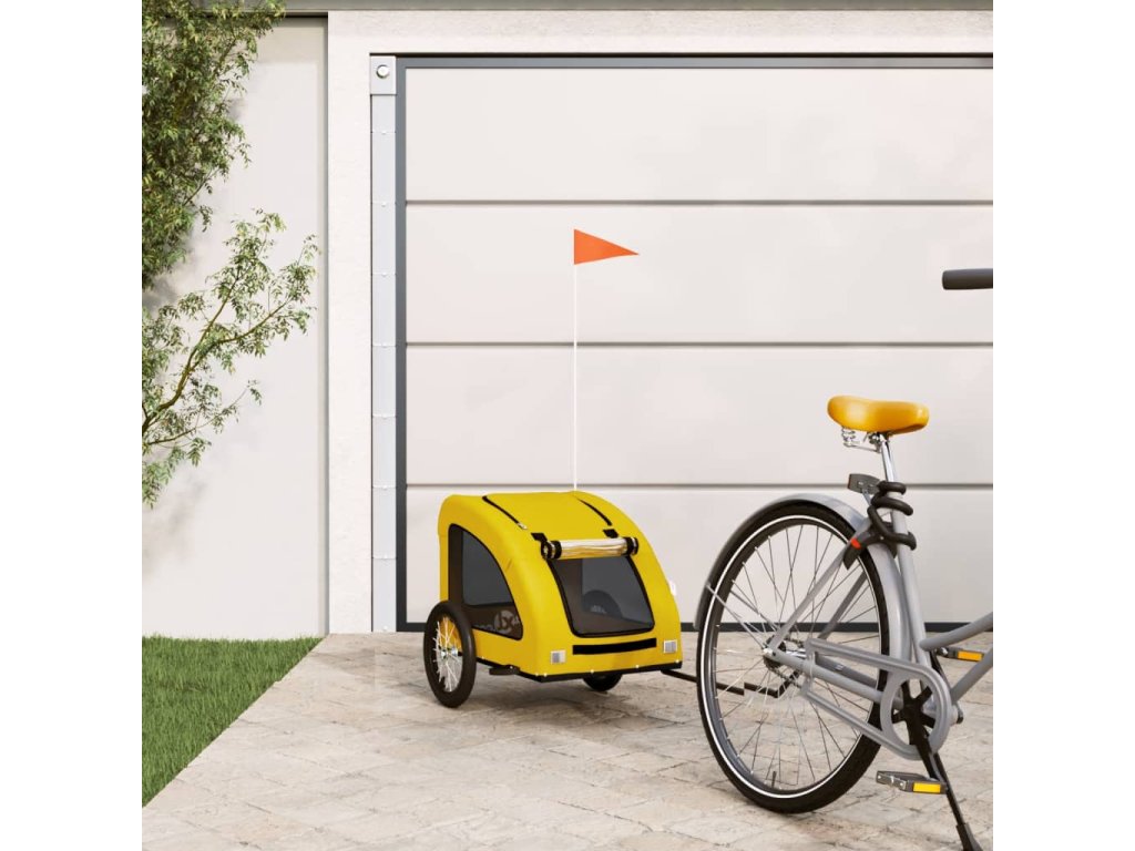 vidaXL Vozík za kolo pro psa žlutý oxfordská tkanina a železo