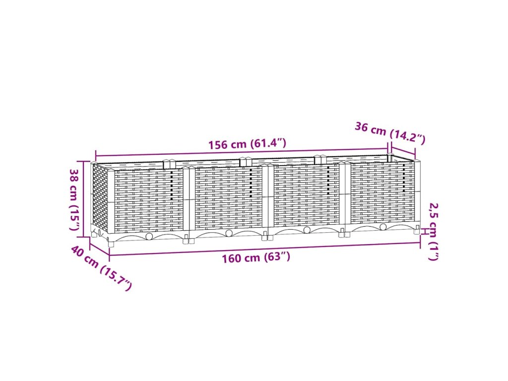 vidaXL Vyvýšený záhon 160 x 40 x 38 cm polypropylen