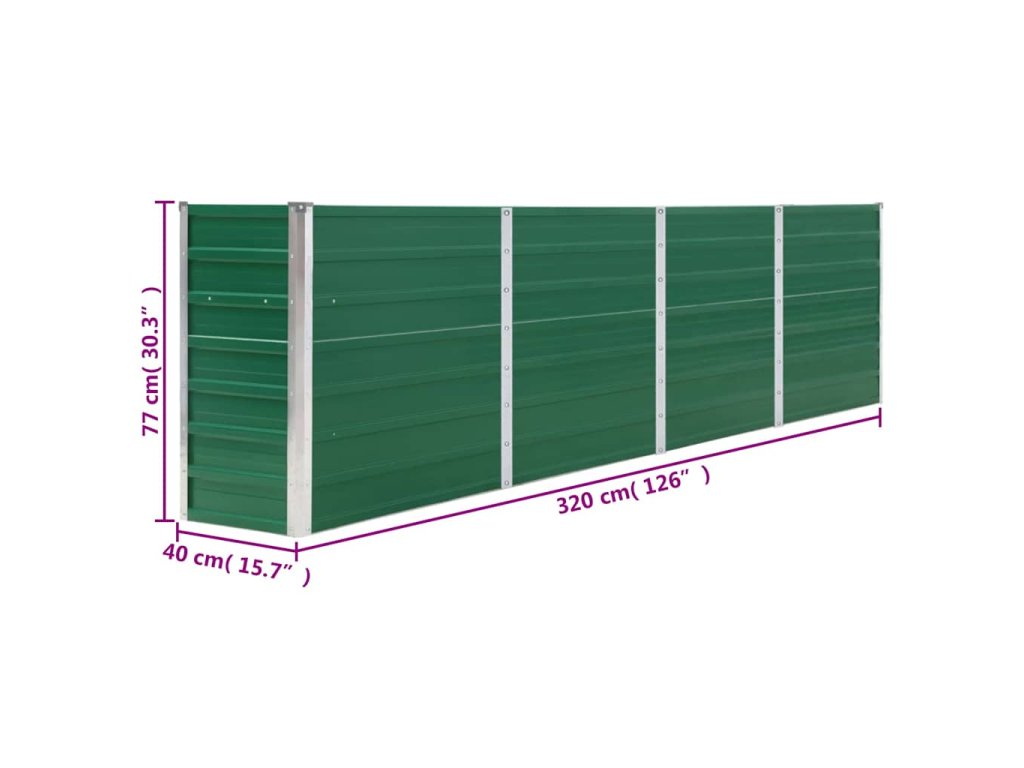 vidaXL Vyvýšený záhon 320 x 40 x 77 cm pozinkovaná ocel zelený