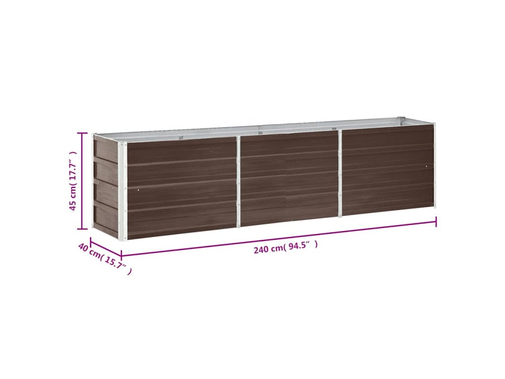 vidaXL Vyvýšený záhon pozinkovaná ocel 240 x 40 x 45 cm hnědý