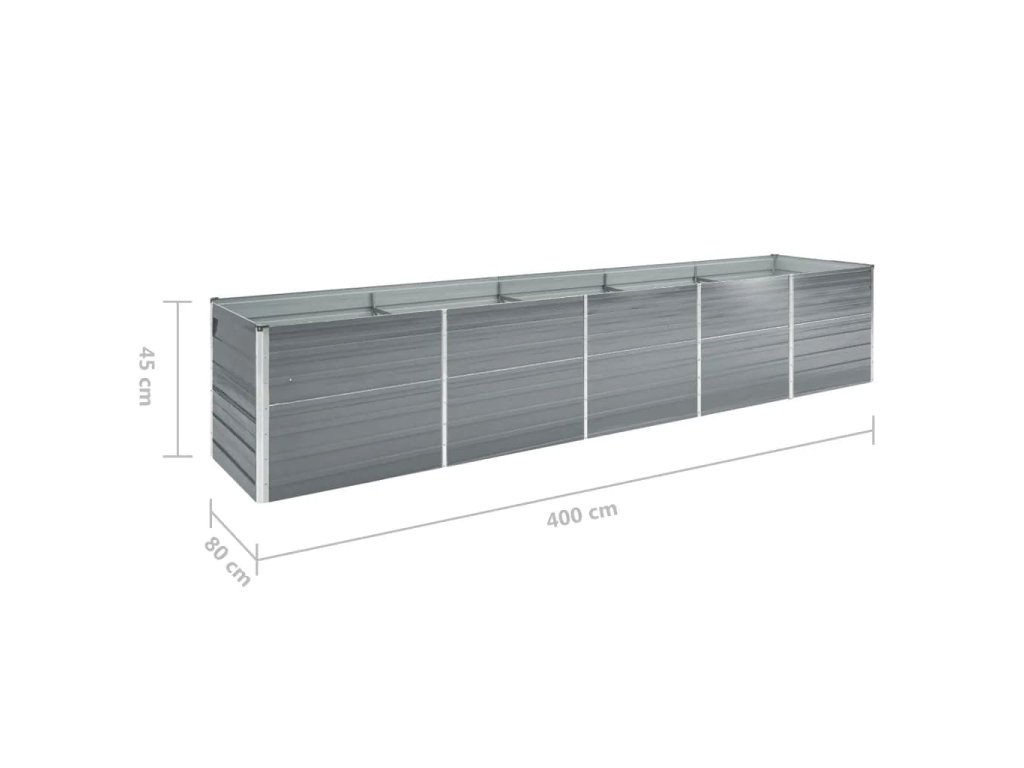 vidaXL Vyvýšený záhon pozinkovaná ocel 400 x 80 x 45 cm šedý