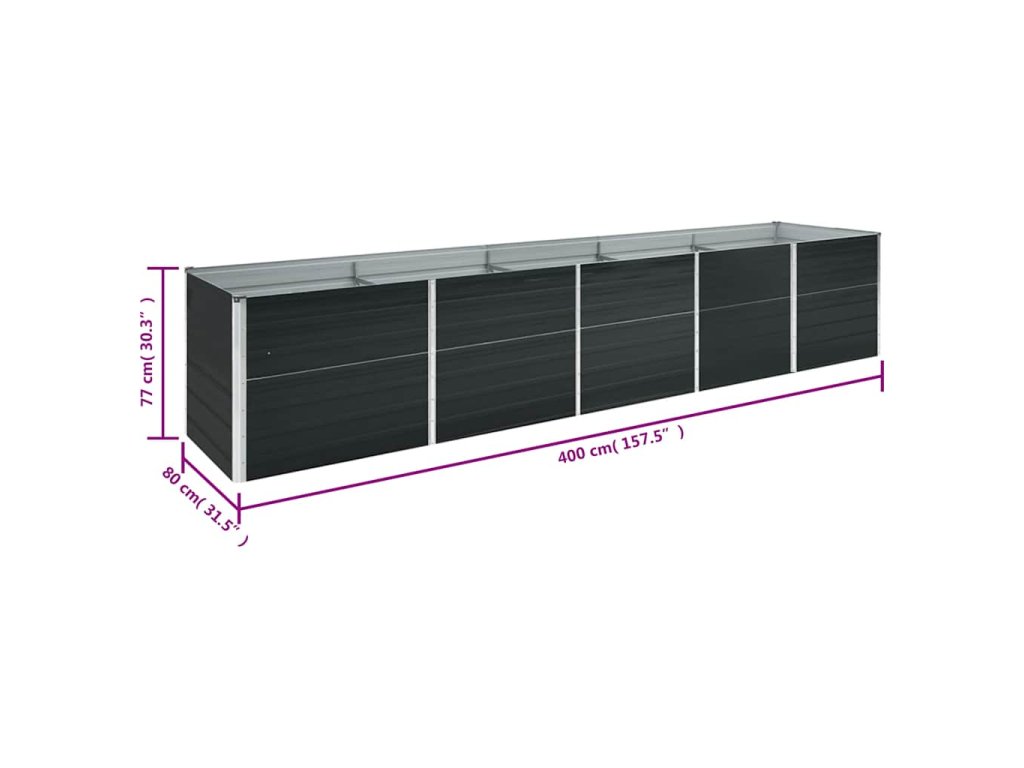 vidaXL Vyvýšený záhon pozinkovaná ocel 400 x 80 x 77 cm antracitový