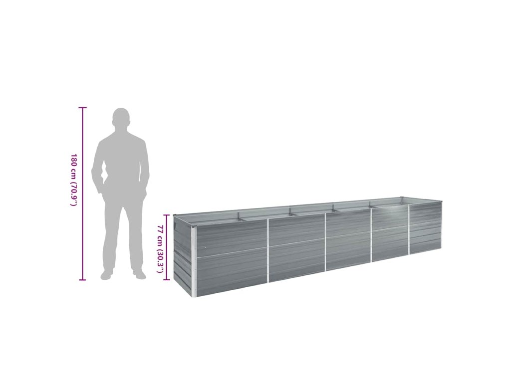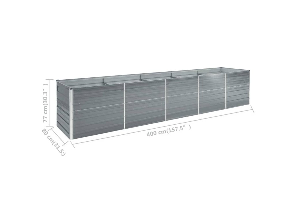 vidaXL Vyvýšený záhon pozinkovaná ocel 400 x 80 x 77 cm šedý
