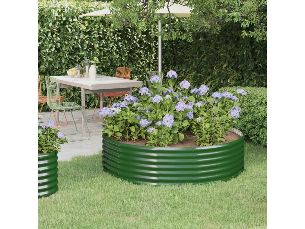 vidaXL Vyvýšený záhon práškově lakovaná ocel 140x140x36 cm zelený