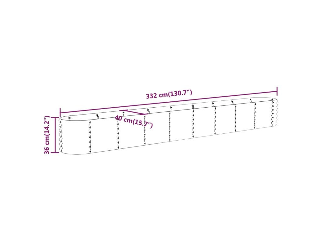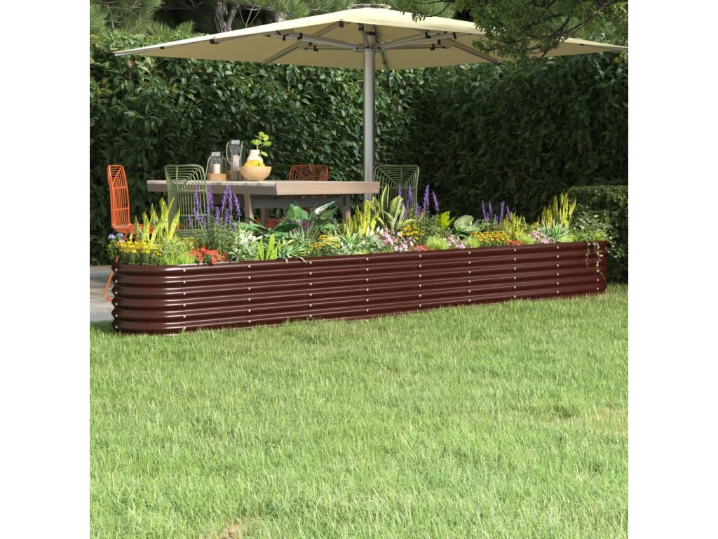 vidaXL Vyvýšený záhon práškově lakovaná ocel 332x40x36 cm hnědý