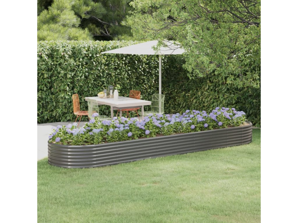 vidaXL Vyvýšený záhon práškově lakovaná ocel 396x100x36 cm šedý