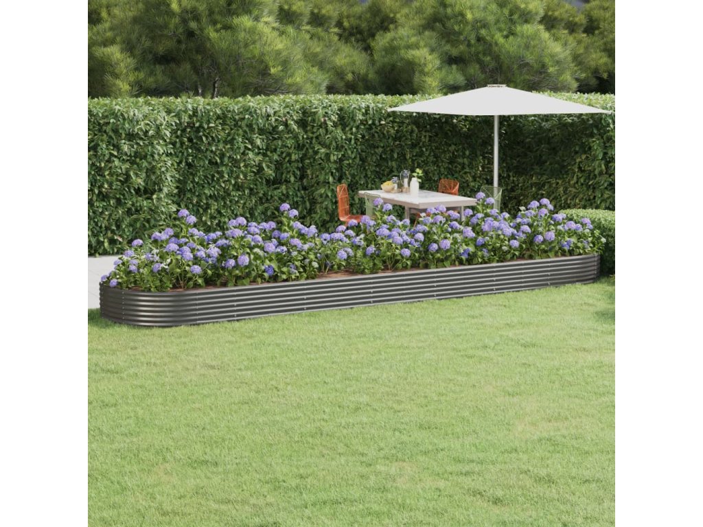 vidaXL Vyvýšený záhon práškově lakovaná ocel 600x140x36 cm šedý