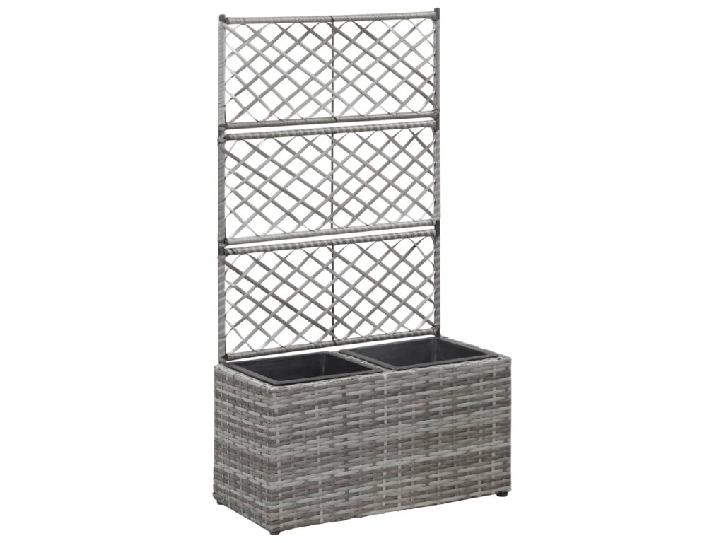 Tento polyratanový vyvýšený záhon se zabudovanou treláží obsahuje 2 vyjímatelné květináče a dodá vašemu venkovnímu bydlení nový šarm.