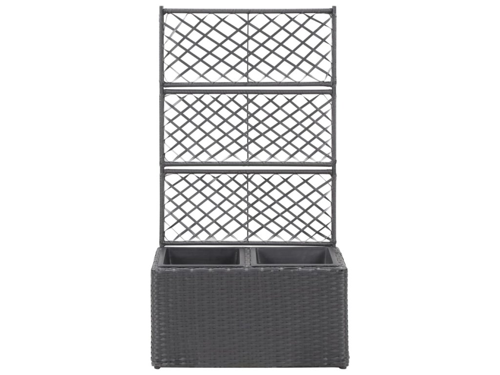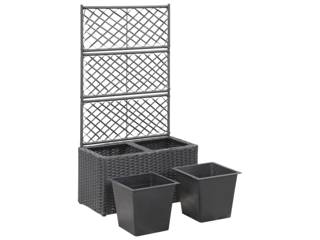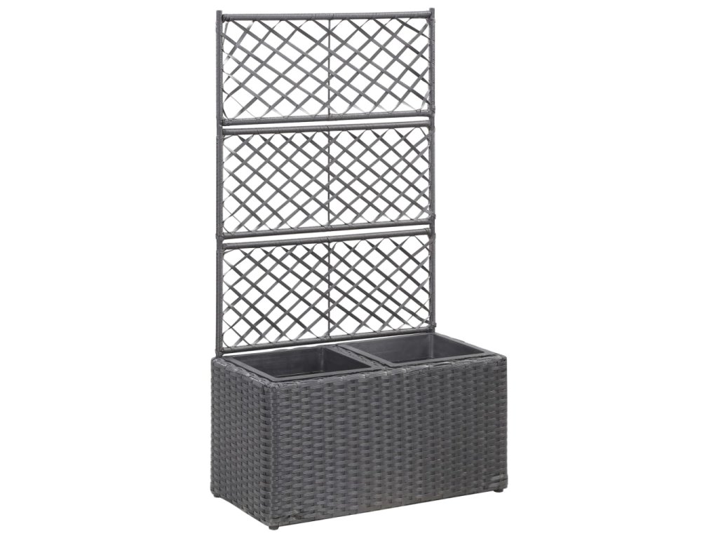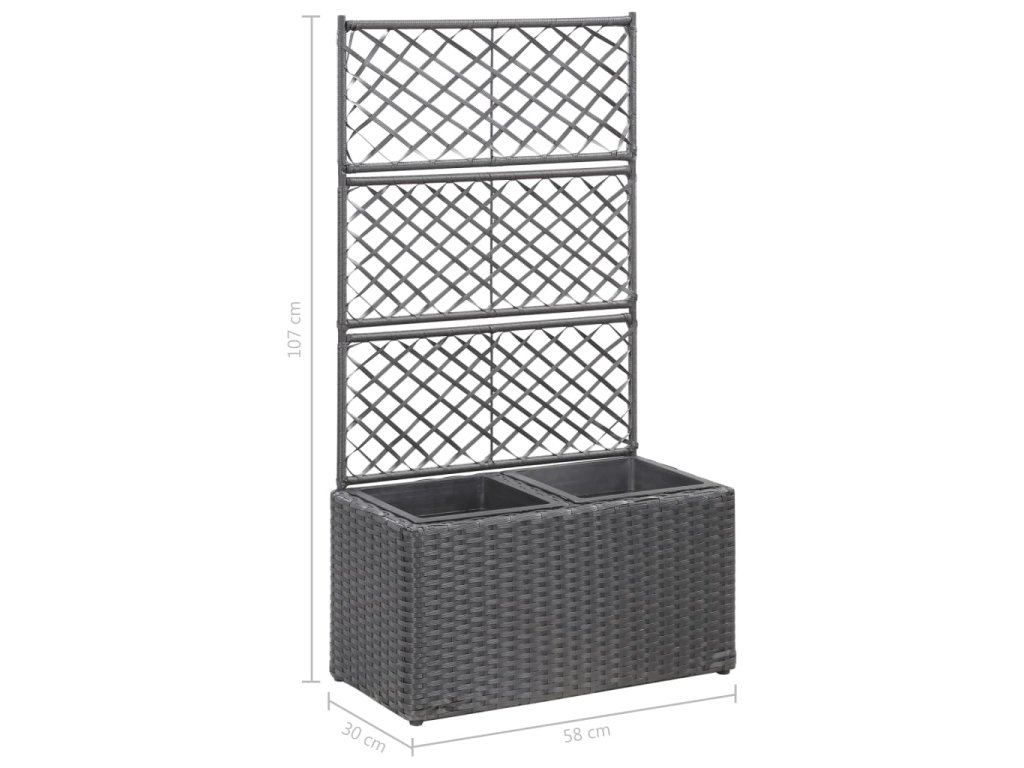 vidaXL Vyvýšený záhon s treláží 2 květníky 30x30x107cm polyratan černý