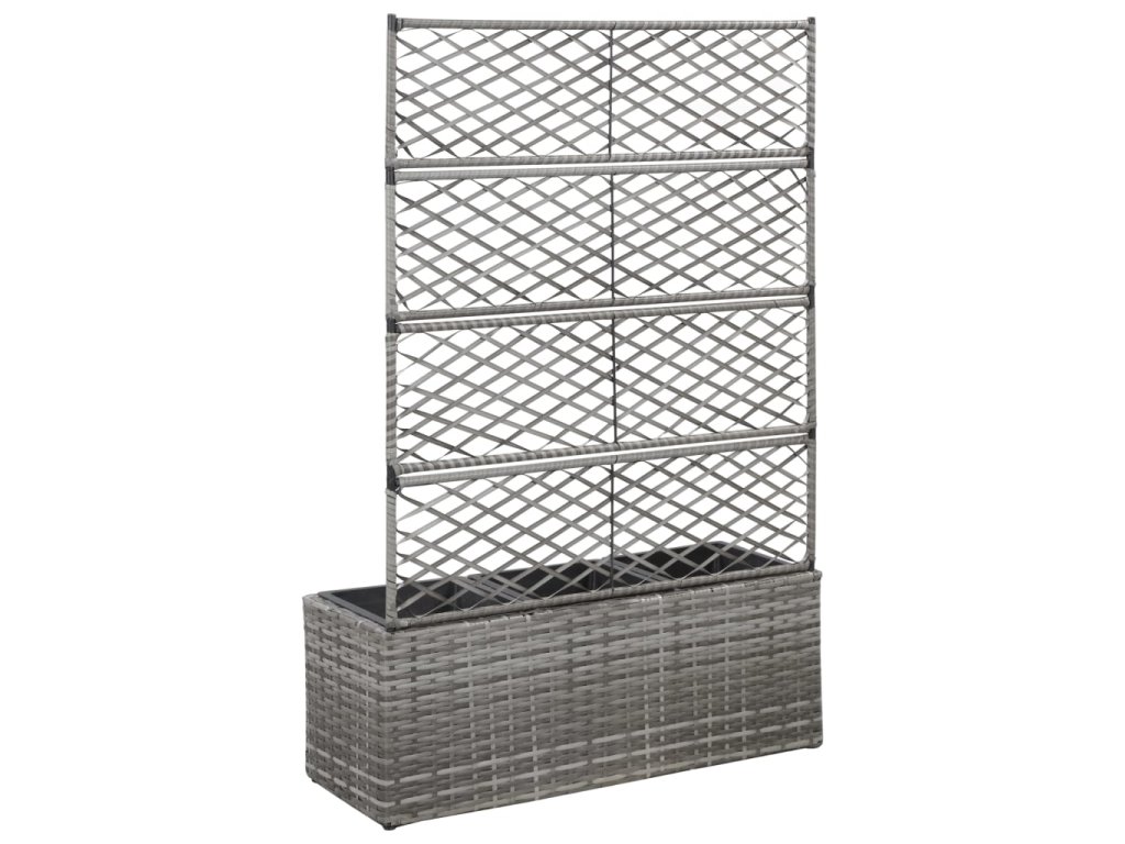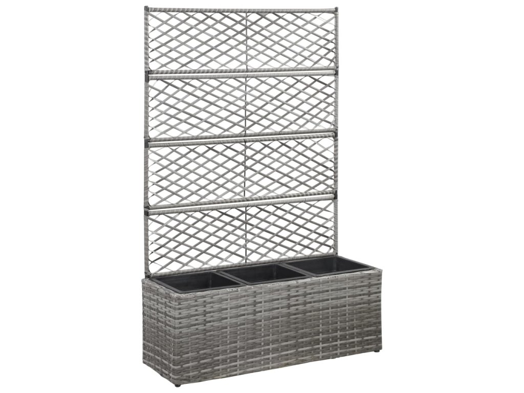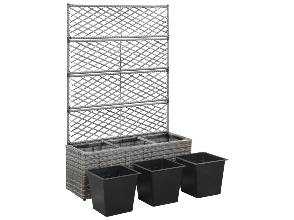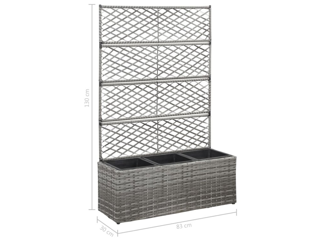 vidaXL Vyvýšený záhon s treláží 3 květníky 83x30x130 cm polyratan šedý