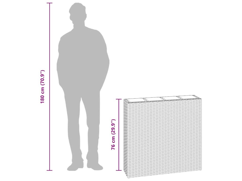 Truhlík je vyrobený z trvanlivého a voděodolného ratanu a bude se na vaší zahradně skvěle vyjímat. Těsně pletená struktura vytváří hladký povrch a zároveň zaručuje výtečnou stabilitu. Uvnitř ratanového truhlíku se nachází 4 plastové květináče. Jelikož je každý díl vyrobený z kvalitního materiálu, celá sada má velmi dlouhou životnost. Můžete v ní pěstovat všechny druhy živých zelených rostlin i květin. Balení obsahuje 1 truhlík a 4 vyjímatelné a stejně velké květináče.