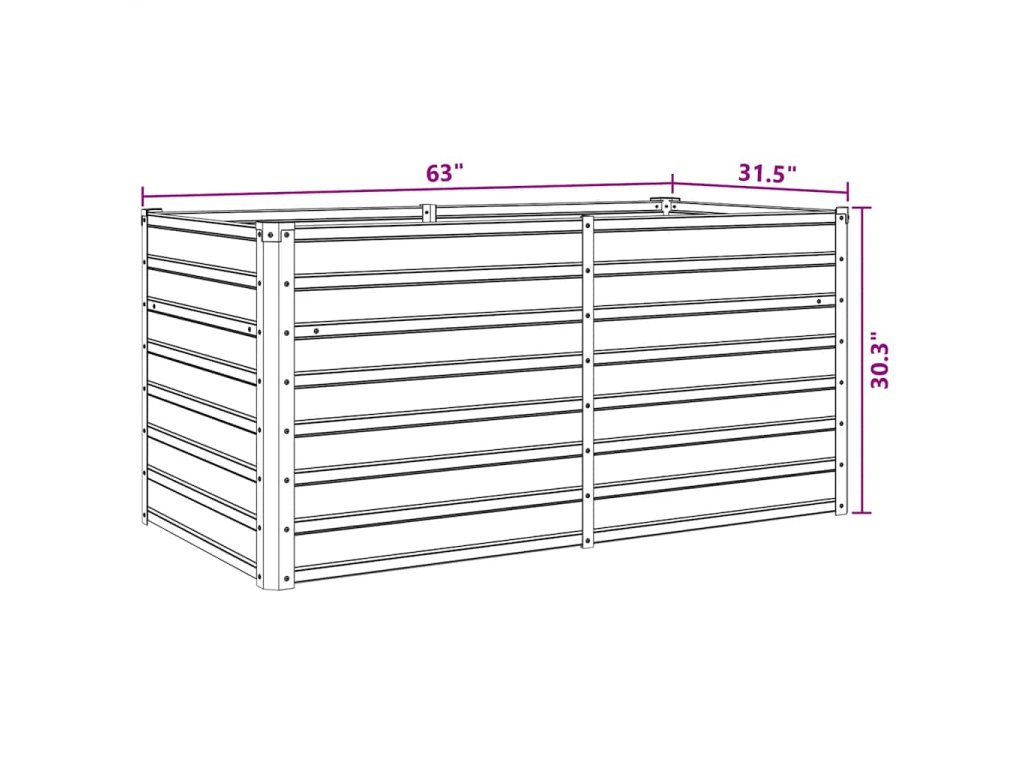 Tento vyvýšený zahradní truhlík je mimořádně odolný a krásně vyrobený. Je dostatečně hluboký a dostatečně široký, aby se do něj vešlo velké množství půdy a poskytl dostatek prostoru pro vaše rostliny, zeleninu, byliny a květiny. Díky svému jednoduchému obdélníkovému designu to bude stylový doplněk na každý balkon, terasu nebo dvůr. Je vyroben z pozinkované oceli a je opatřen vnitřními opěrnými držáky, díky nimž je tento truhlík velmi robustní a odolný. Rám truhlíku je navržen tak, aby zde nebyly nebezpečné ostré hrany.