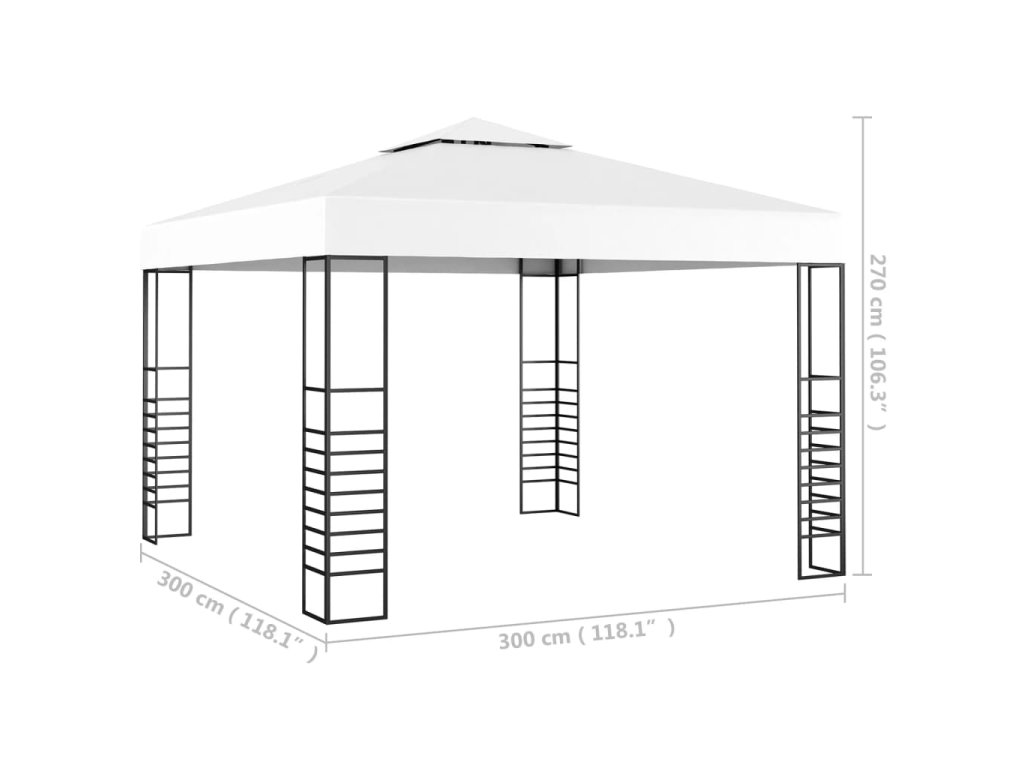 Rám je celý vyrobený ze železa, což mu dodává na pevnosti a stabilitě. Co se týče střechy altánu, je ze 100% polyesteru s polyamidovou vrstvou. Uchrání vás tedy nejen před škodlivými UV paprsky, ale také před deštěm. Design altánu je velmi stylový. Dvojitá střecha je zhotovená s průduchy, které zlepšují cirkulaci vzduchu pro větší pohodlí. Montáž je velmi snadná.