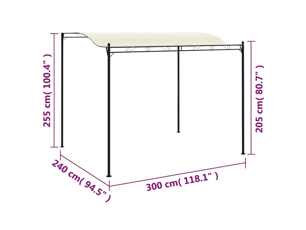Altán má robustní ocelovou konstrukci a polyesterový baldachýn. Je velmi snadné ho sestavit.