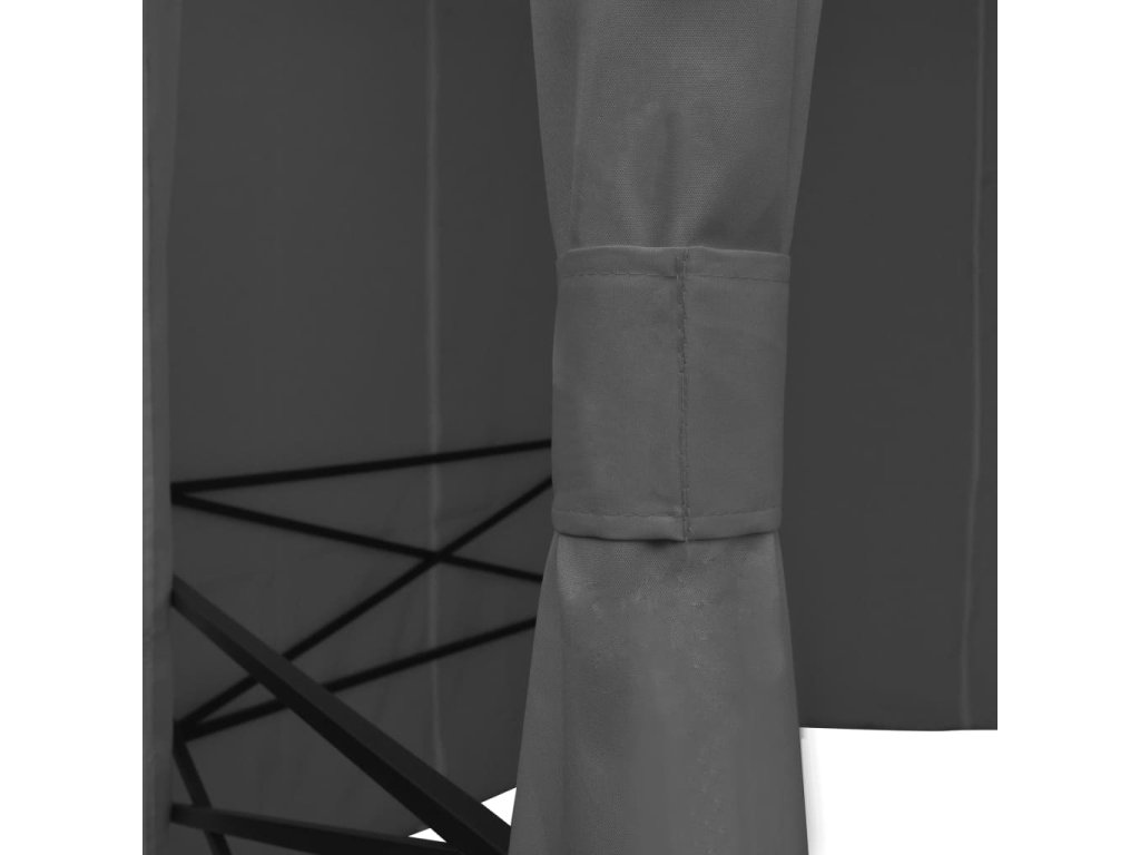 Střecha a závěsy altánu jsou vyrobené z polyesteru potaženého PA vrstvou, takže jsou nepromokavé. Bytelný rám je vyrobený z pevné oceli s práškovým nástřikem a altán je stabilní a nerezaví. Stylová stříška navíc zaujme svým dvoupatrovým provedením, které napomáhá proudění vzduchu. Polyesterové závěsy lze zatáhnout nebo je sepnout přiloženými stužkami a nechat je otevřené.