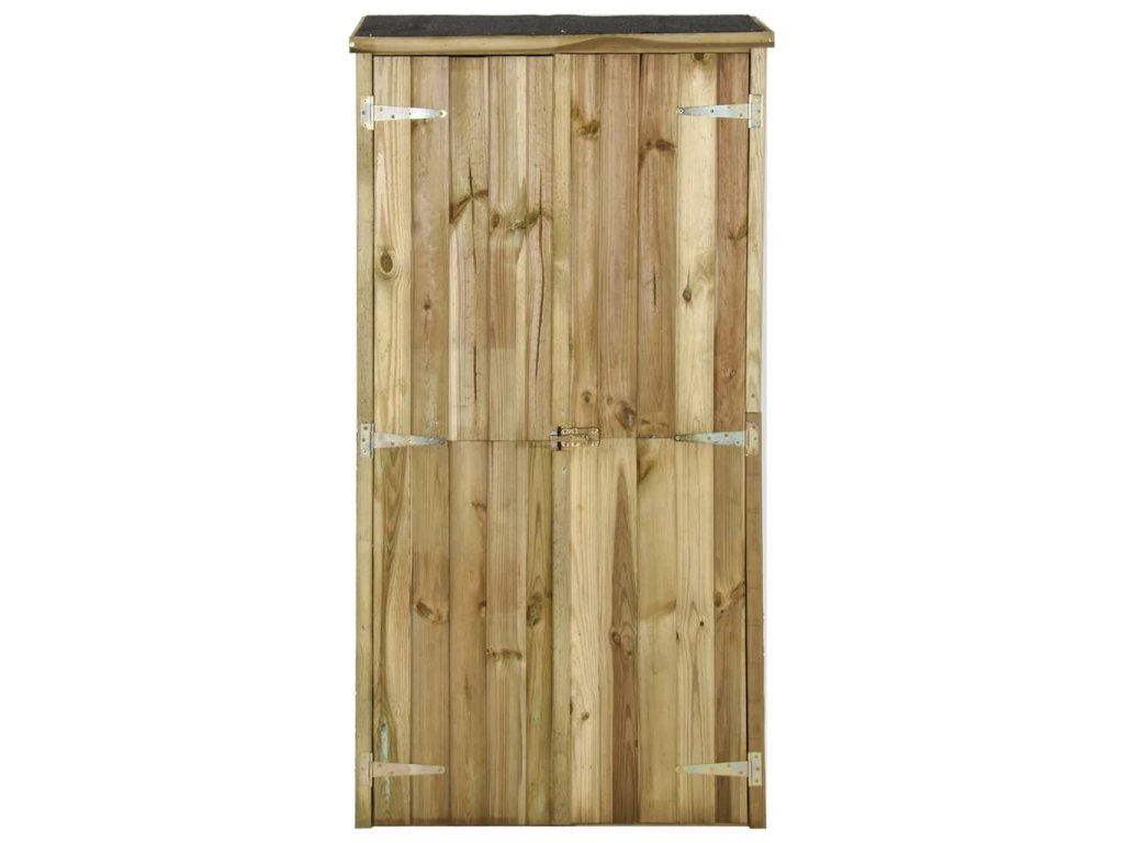 Tato venkovní úložná skříň je vyrobena z borového dřeva. Impregnované borové dřevo je odolné proti opotřebení, povětrnostním vlivům a hnilobě. Střecha je navíc pokryta voděodolným dehtovým papírem.