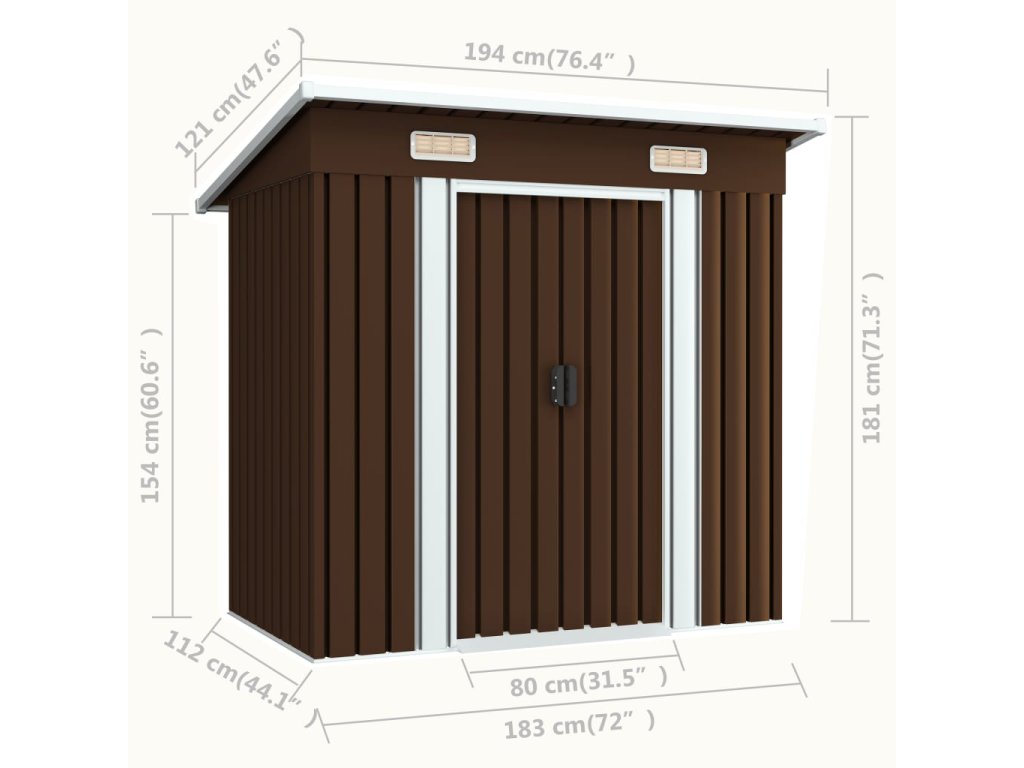vidaXL Zahradní domek na nářadí hnědý 194 x 121 x 181 cm ocel