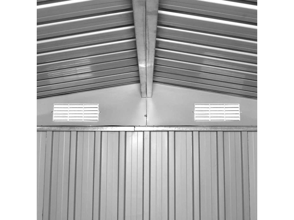 Konstrukce z pozinkované oceli je odolná a pevná, takže kůlna nepodléhá korozi ani jiným vlivům extrémních povětrnostních podmínek. Obsahuje také ocelový podlahový rám, který zvyšuje její stabilitu a výborně se hodí jako podklad pro položení dřevěné podlahy (dřevo není součástí balení).