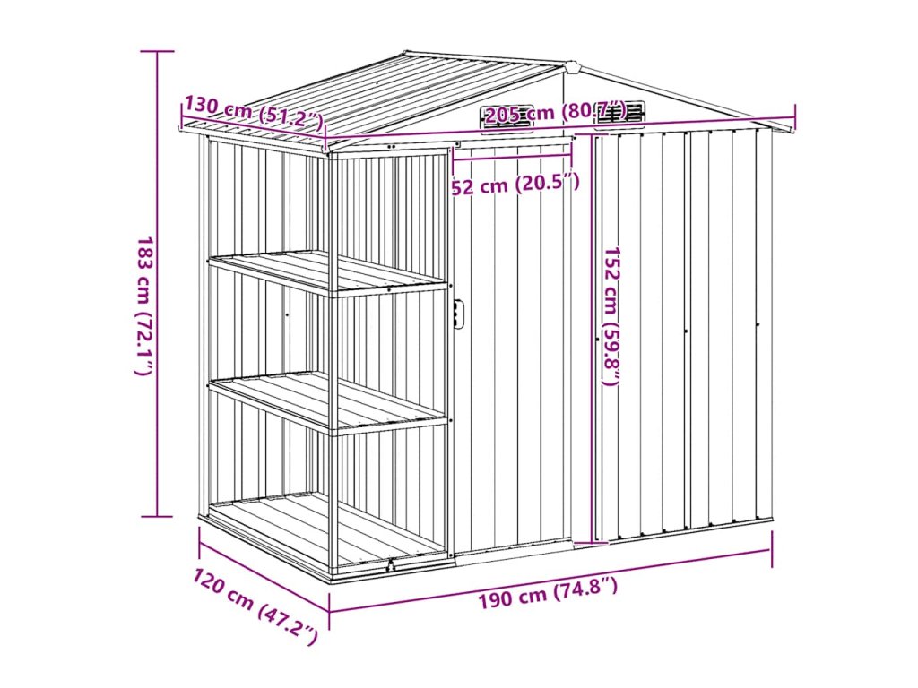 Tento zahradní domek s regálem je ideální pro uložení široké škály nářadí, zahradního nábytku a zahradního vybavení.