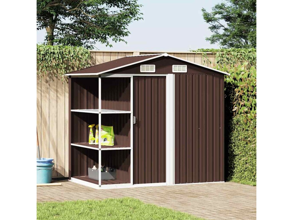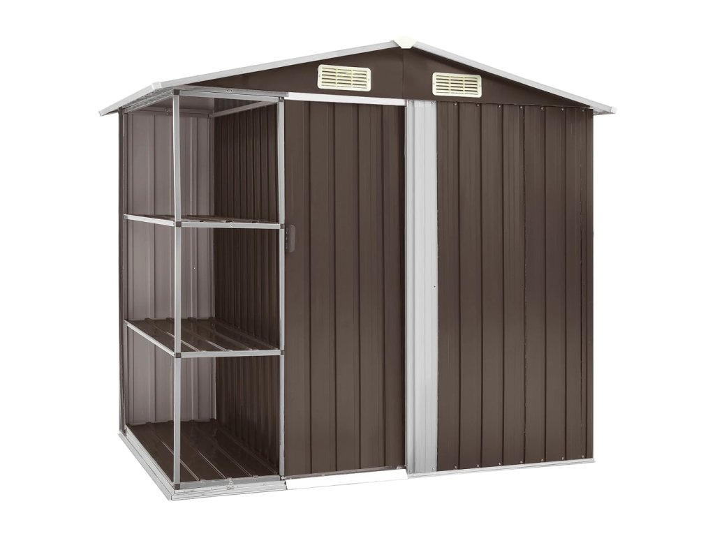vidaXL Zahradní domek s regálem hnědý 205 x 130 x 183 cm železo