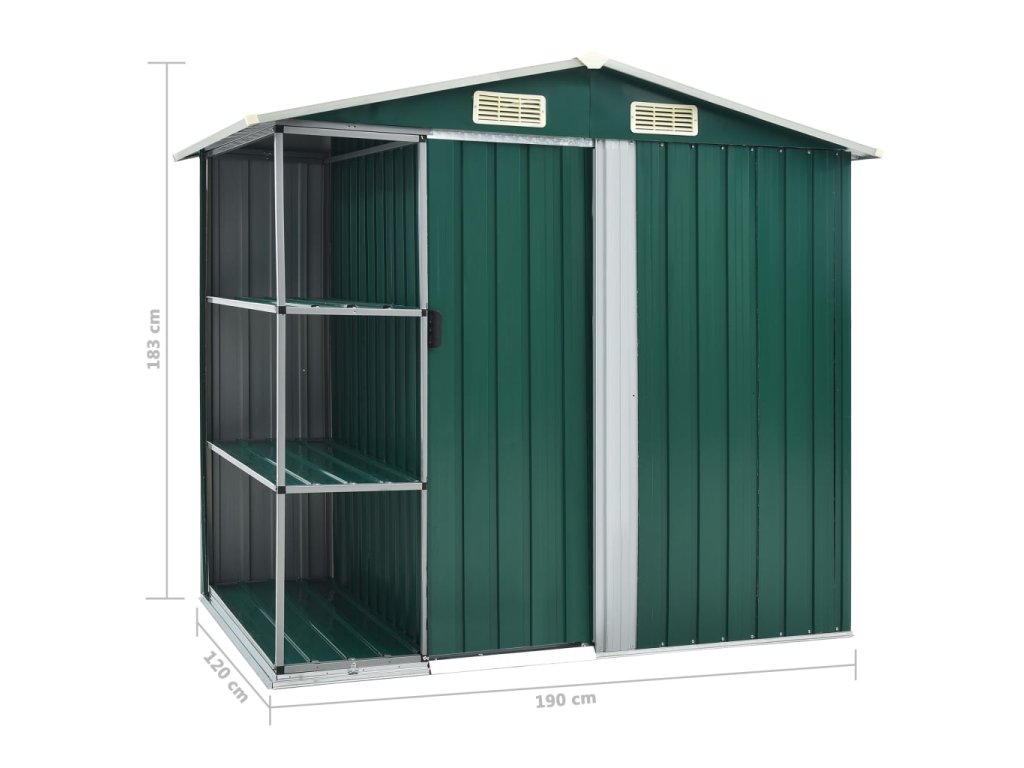 vidaXL Zahradní domek s regálem zelený 205 x 130 x 183 cm železo