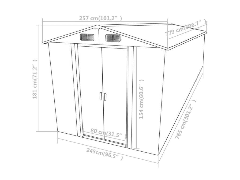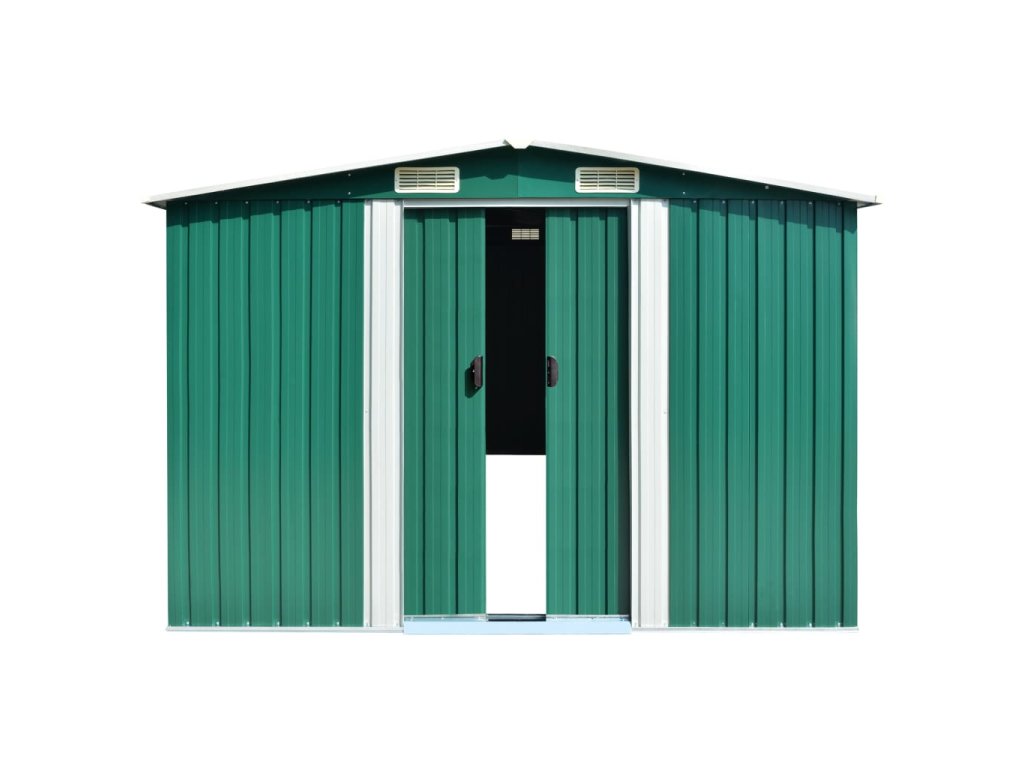 Tento skladovací domek je vybaven větracími otvory, které zajišťují vynikající větrání. Jeho dvojité posuvné dveře v přední části umožňují snadný vstup a výstup. Díky konstrukci z pozinkované oceli je skladovací domek na nářadí odolný a pevný a nepodléhá korozi ani nepříznivým povětrnostním podmínkám.