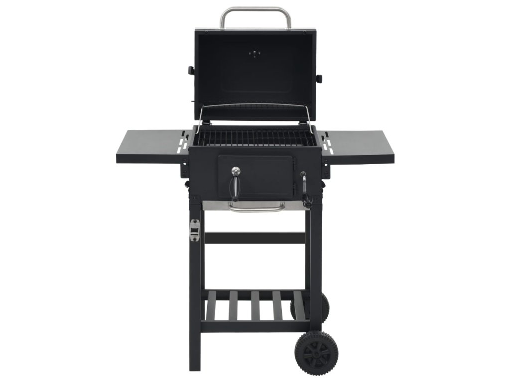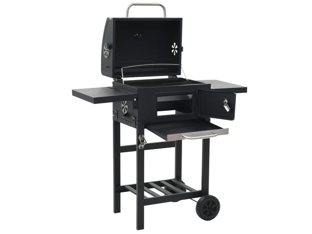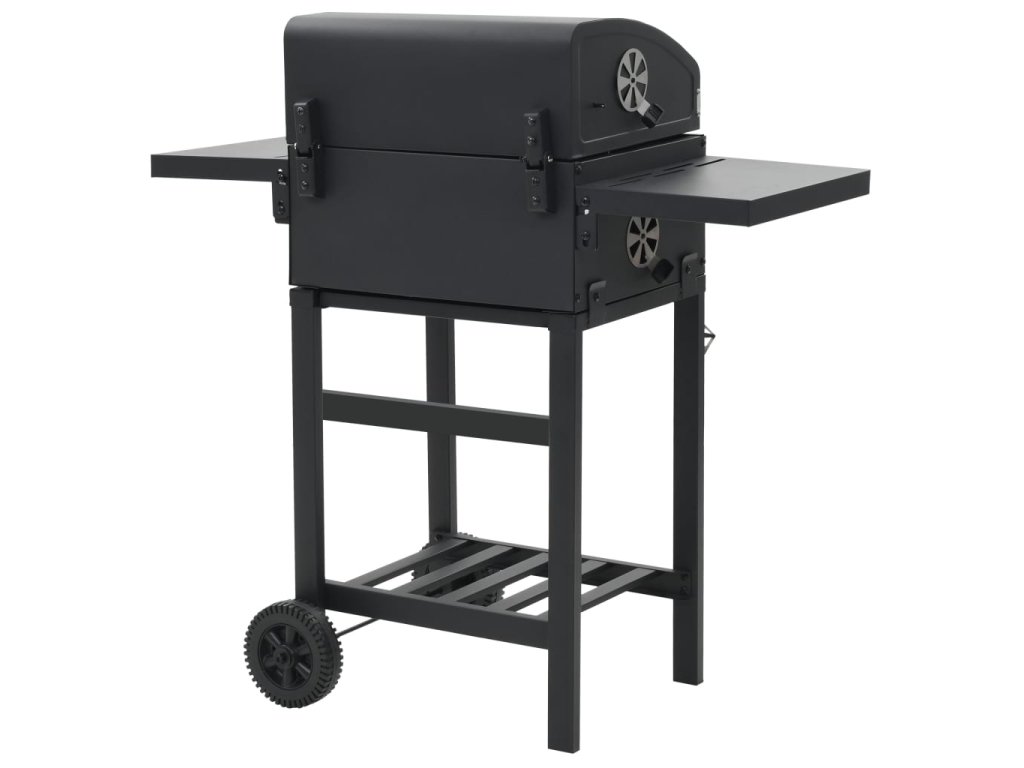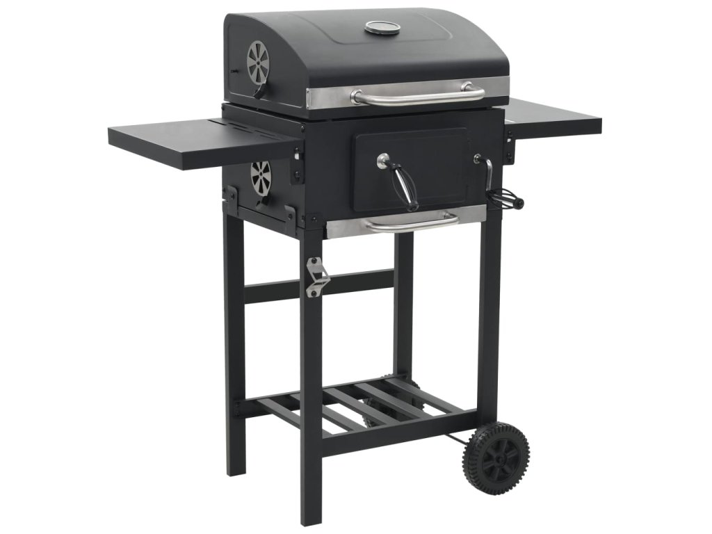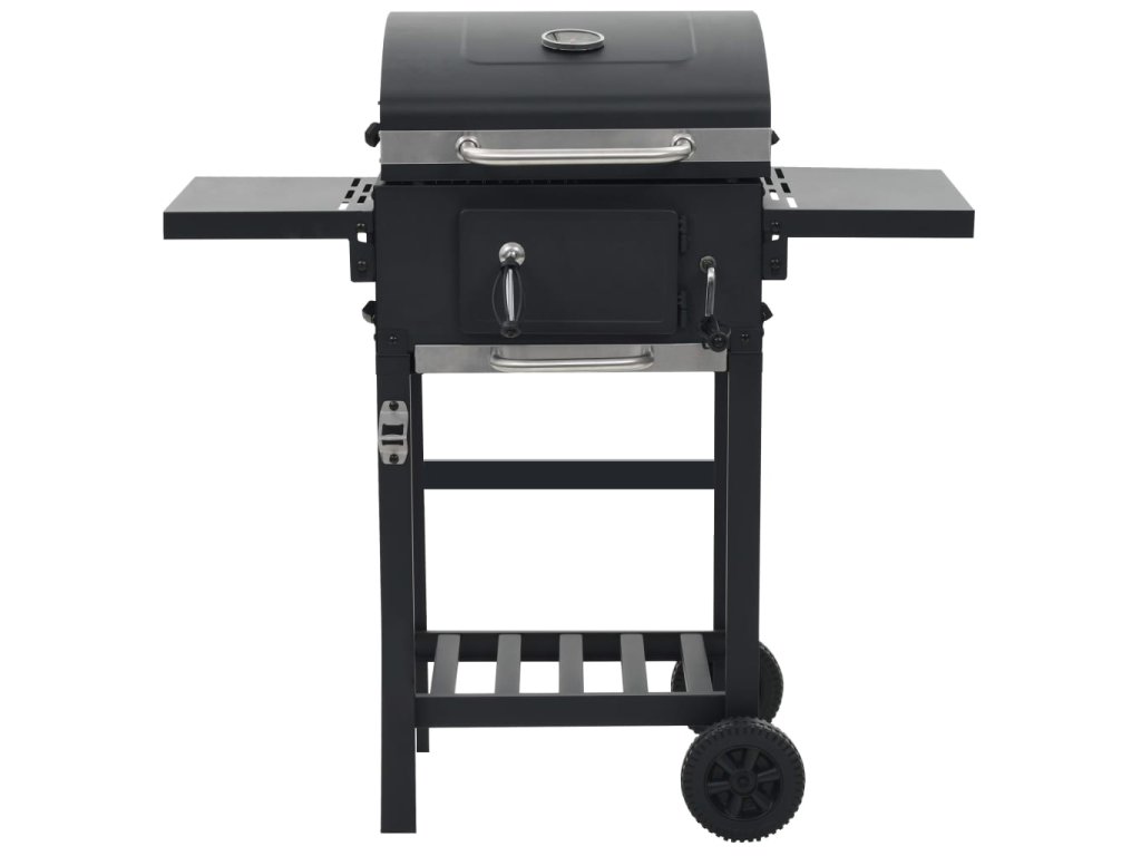 vidaXL Zahradní gril na dřevěné uhlí s poličkou černý