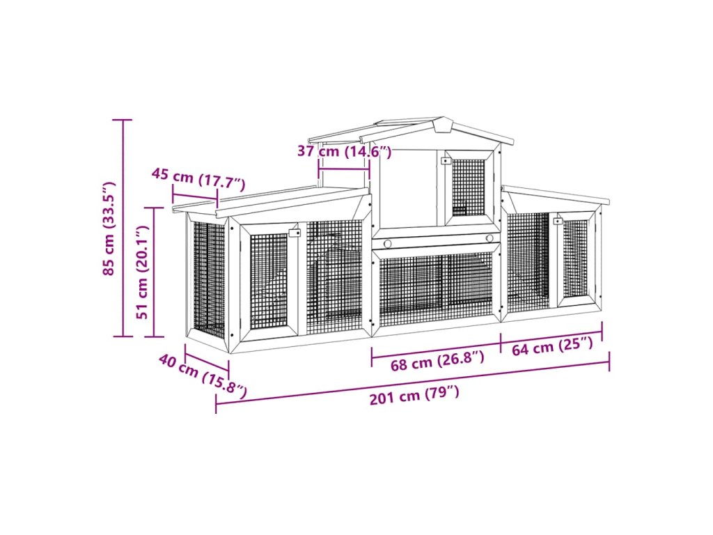 Tato kvalitní dvoupatrová králíkárna poskytuje velké útulné místo pro chov malých zvířat, zejména roztomilých králíčků. Má několik způsobů využití: hraní, pohyb, trénink nebo bezpečný pobyt vašich zvířat.