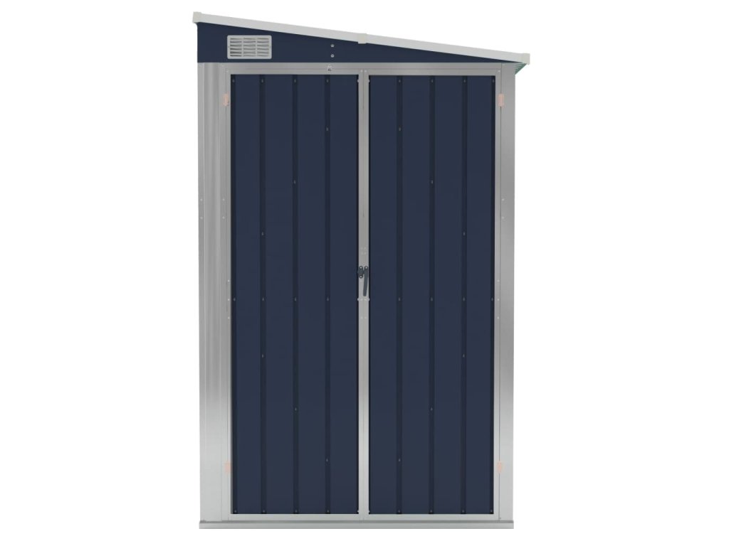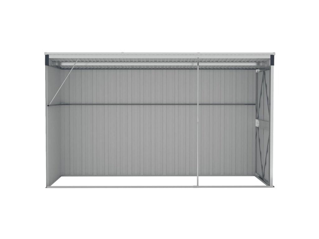 Díky tomu, že je vyroben z pozinkované oceli a kovu, vyžaduje sklad minimální údržbu a je velmi odolný. Dvojité otevírací dveře v přední části umožňují snadný vstup a výstup. Plastová rukojeť s funkcí zámku zajišťuje bezpečnost vašich věcí. Navíc dešťová voda automaticky odtéká ze střechy díky šikmé konstrukci.
