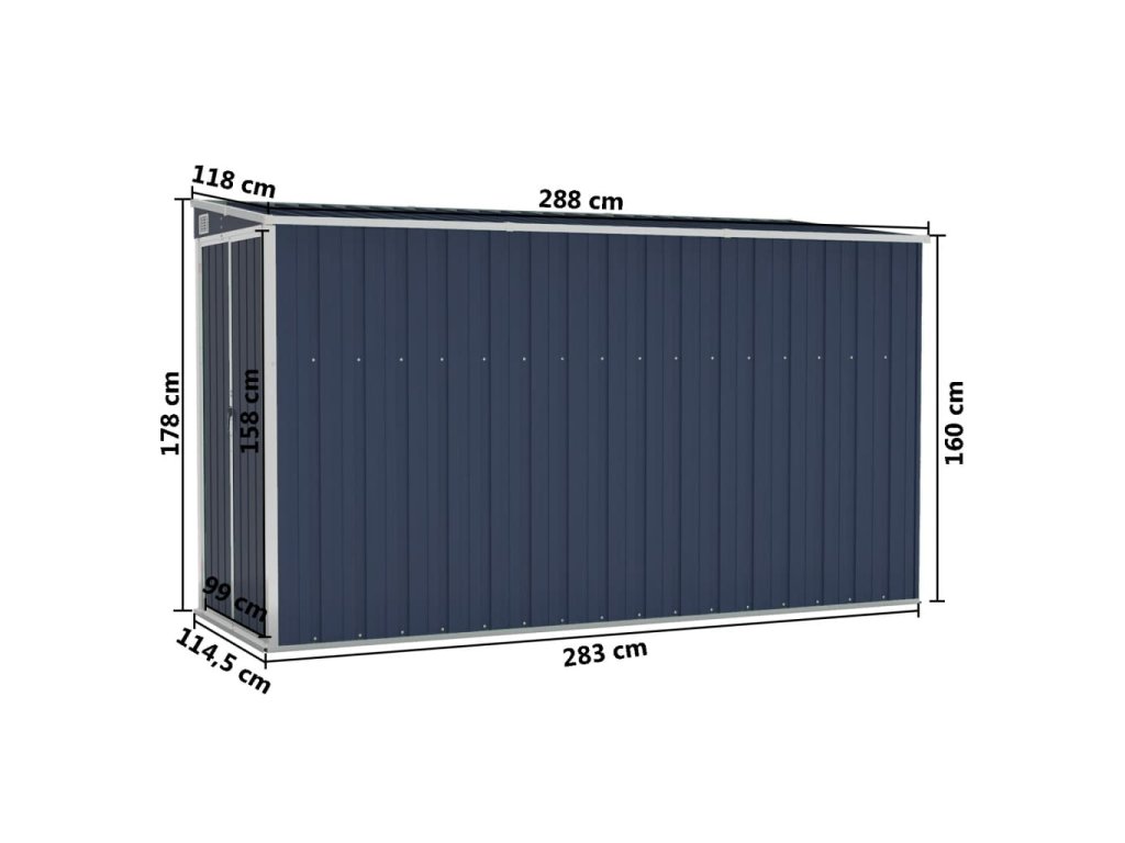 vidaXL Zahradní kůlna antracitová 118 x 288 x 178 cm ocel